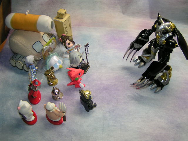 今現在持ってるちみっこフィギュア連合軍vs新参の黒ウォグレさん。